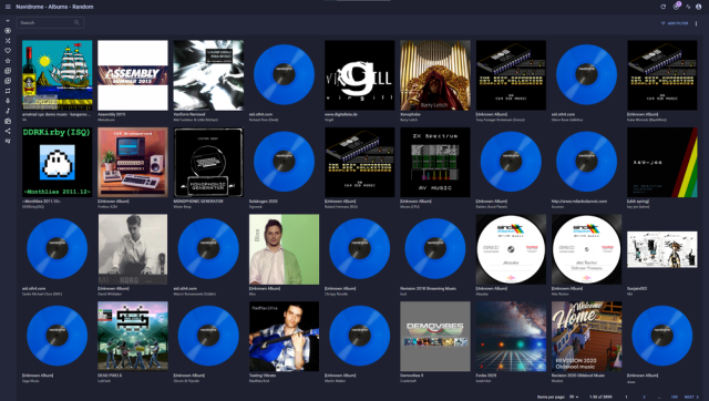 Да, обложки есть еще не ко всем альбомам\авторам\трекам, но прослушиванию это ничуть не мешает. Хоть радио и остановило вещание, пополнение музыкальной библиотеки никуда не делось (похоже, вошло уже в привычку). Возможно, к воскрешению hyperadio, если такое произойдёт, база уже перевалит за 20K треков. Сейчас demoscene\vgm\chiptune – около 18000 треков.
